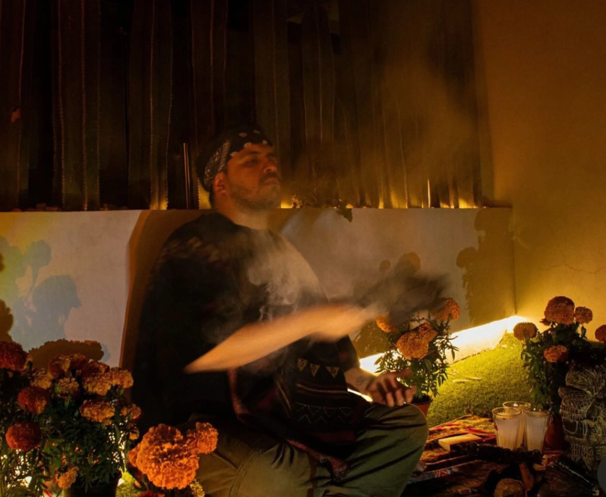 Emilio fue invitado a conocer la nueva colección de ropa “Máscaras” de Amor & Rosas, una propuesta que explora la identidad, los arquetipos y las capas visibles e invisibles del ser. Más tarde, fue invitado a guiar una ceremonia especial durante el evento de la colección “Aliados de Alma”, una experiencia profundamente espiritual inspirada en los animales de poder y su energía protectora y guía.